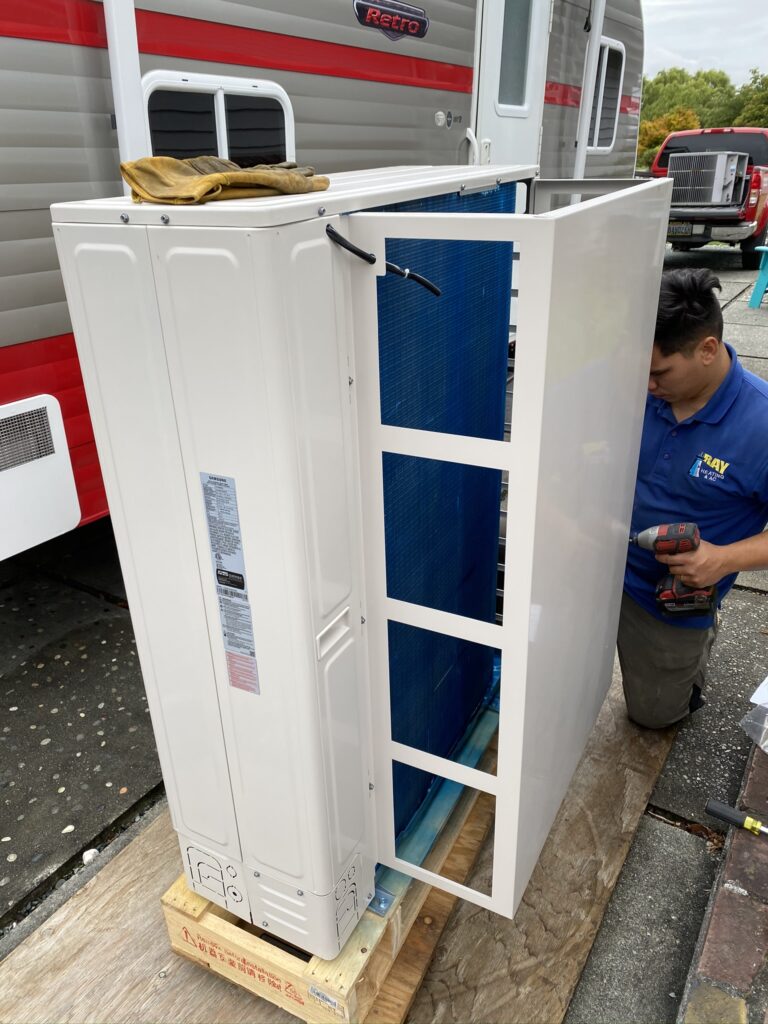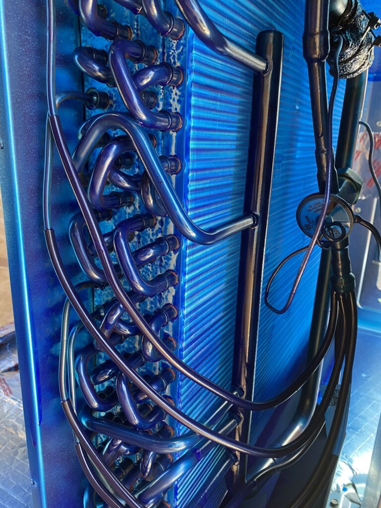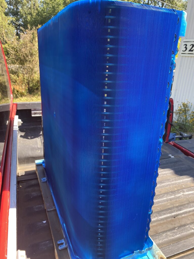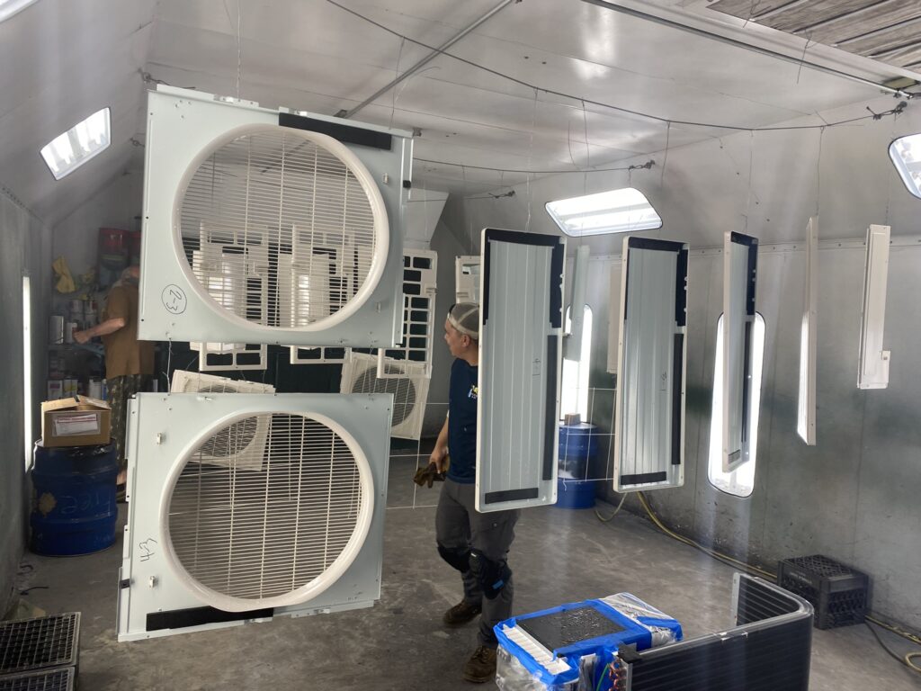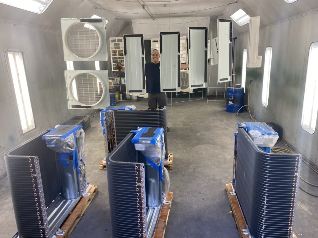 For new installations, we disassemble the units and strip off all the panels to expose the coil.  We then clean the oils and contaminants off each part with a specialized cleaner, allowing the parts and coil to dry for 24 hours and then we spray each part and coil with Bluefin™ Protective Coating. After another 24 hour dry, we reassemble and repackage the unit for shipping or delivery back to the customer.